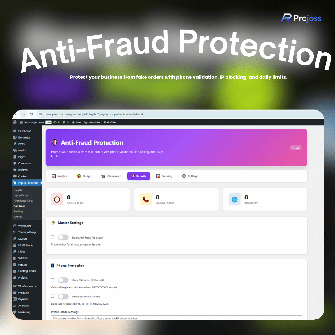 Fake and duplicate orders are a serious problem for WooCommerce stores, especially COD (Cash on Delivery) businesses. This plugin includes a comprehensive fraud prevention system: