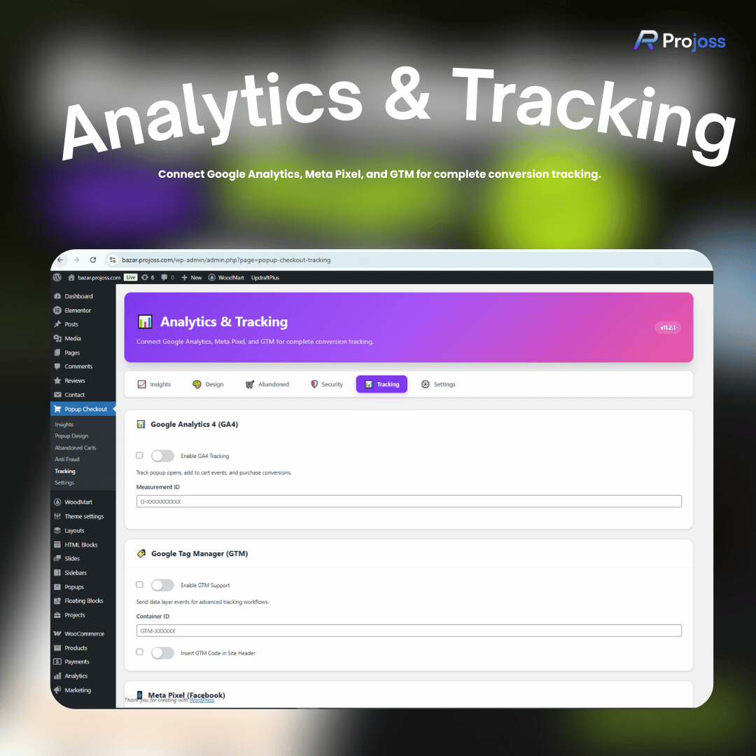 Connect your tracking tools directly from the plugin settings panel — no need to manually add code:
